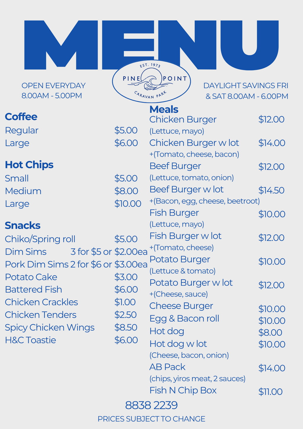 We stock a great range of Pine Point Caravan Park merchandise, perfect for visitors and locals alike.